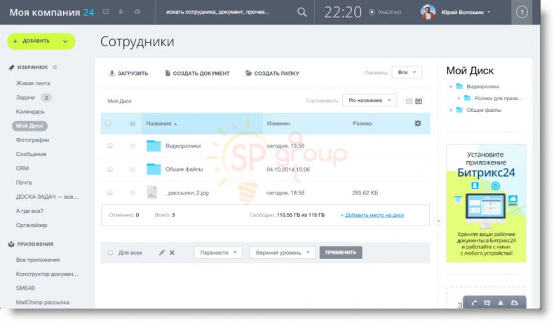 Помимо этого, для облачного хранилища Битрикс24.Диск был сделан полный рефакторинг. В результате значительно возросла скорость работы.