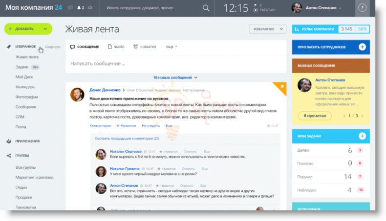 Сегодня сервис «Битрикс24» представляет собой полный набор инструментов в облаке для автоматизации работы компании: корпоративная социальная сеть, задачи, CRM, бизнес-чат и групповые видеозвонки, ip-телефония, почта, Битрикс24.Диск, календари, мобильное приложение, HR- и другие инструменты.