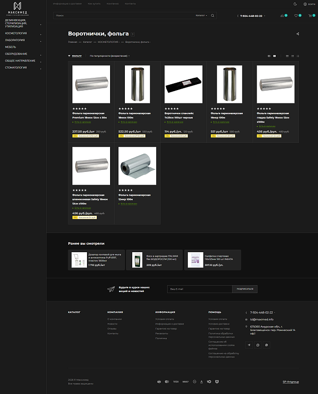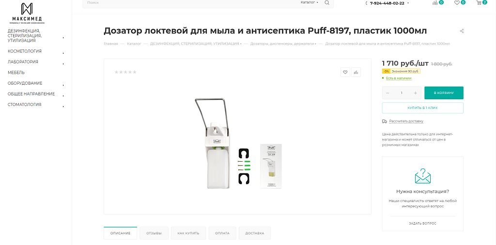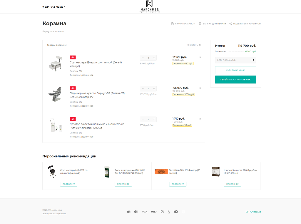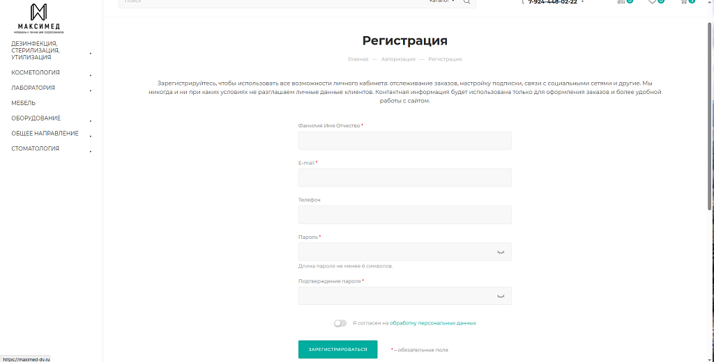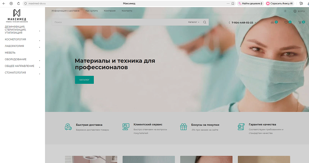 Компания «Максимед» — крупный поставщик медицинского оборудования и расходных материалов для лечебных учреждений, диагностических центров и салонов красоты. Для бизнеса такого масштаба сайт является не просто витриной, а ключевым инструментом продаж и взаимодействия с партнерами.
