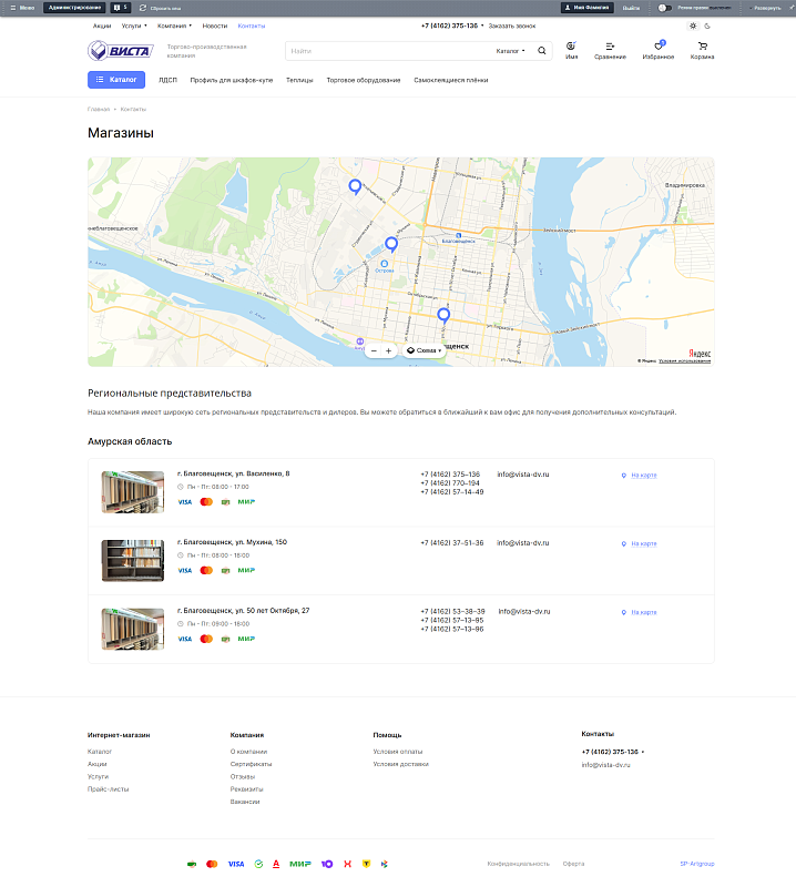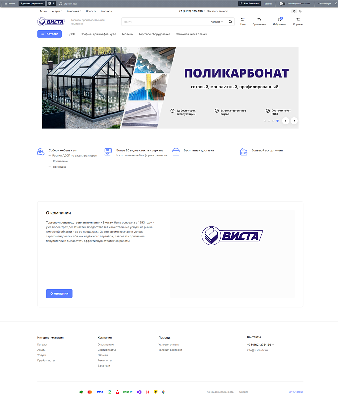 Заказчик: Компания «Виста» - поставщик материалов для рекламы, строительства, торгового оборудования и мебельного производства.