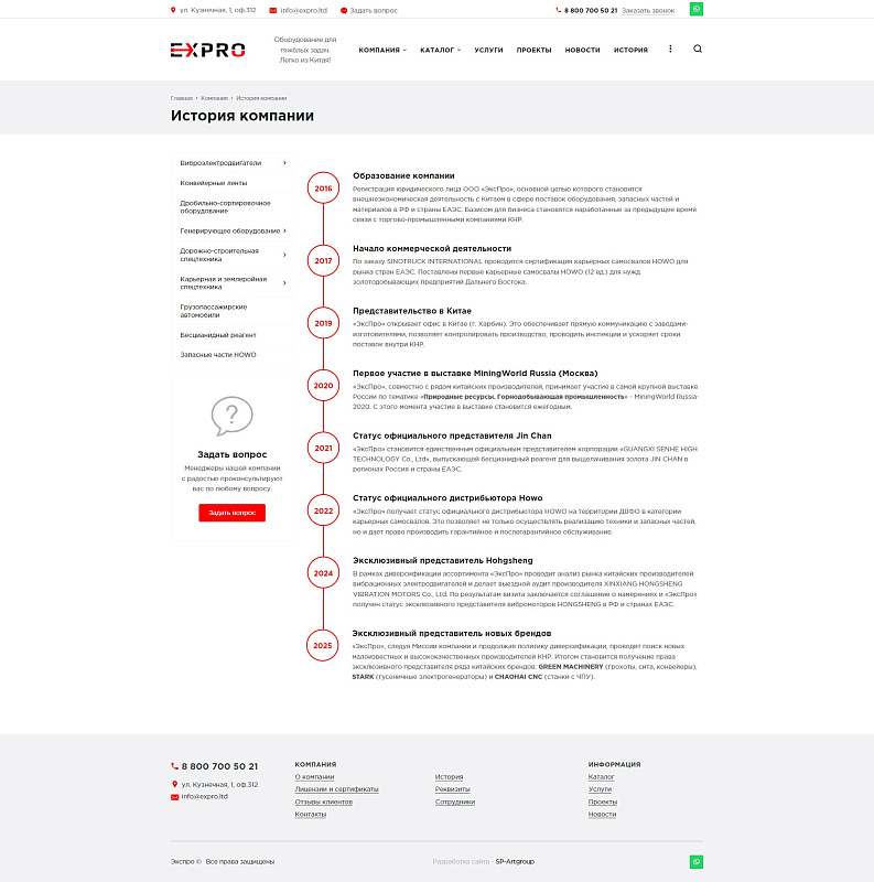 Компания «Экспро» работает с 2016 года и является надёжным поставщиком оборудования, запасных частей и расходных материалов из Китая.