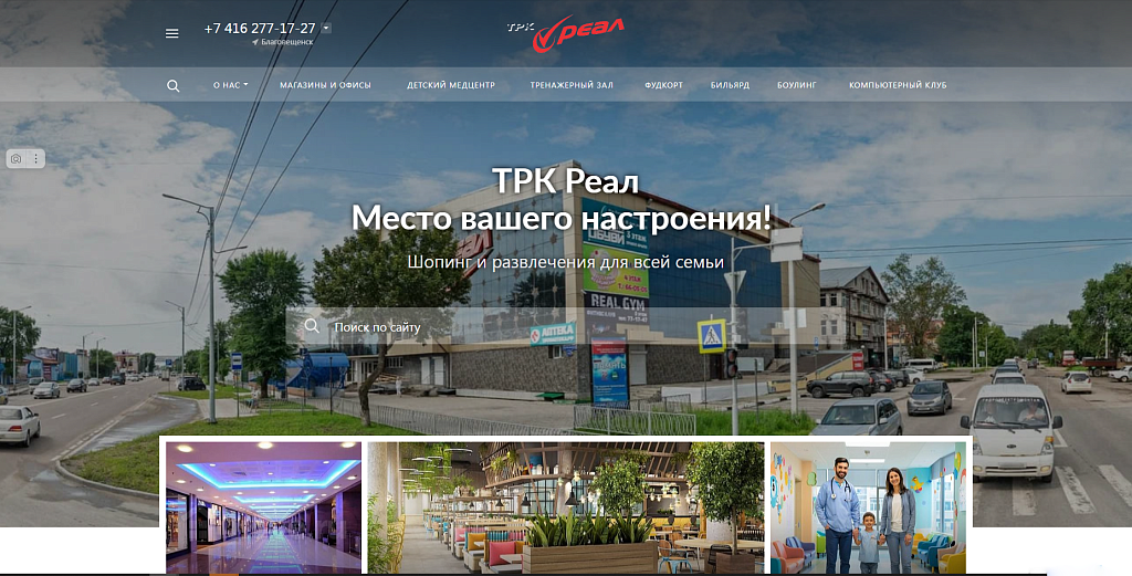 Мы рады представить новый сайт торгово-развлекательного комплекса «Реал» — одного из крупнейших центров отдыха и шопинга на Дальнем Востоке. «Реал» объединяет в себе магазины, офисные пространства, тренажёрный зал, медицинский центр и разнообразные зоны для развлечений всей семьи.