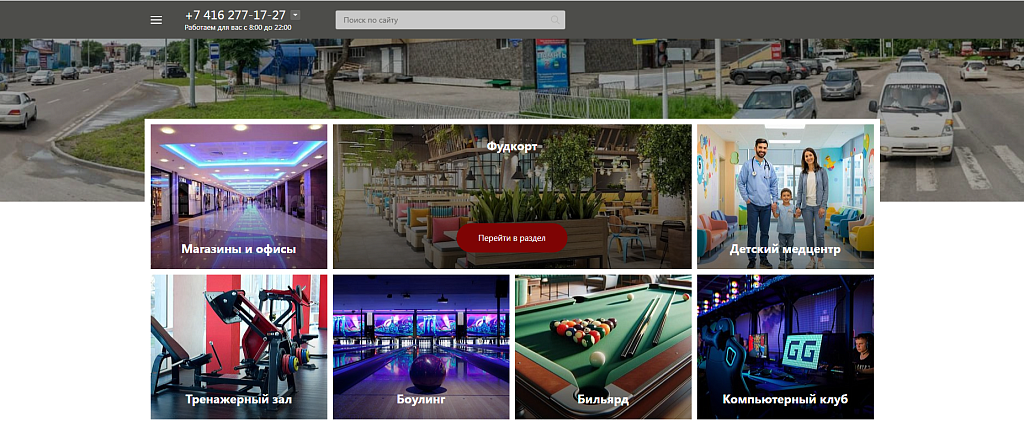 Заказчик обратился к нам с задачей разработки интернет-витрины для ТРК. Основная цель заключалась в том, чтобы создать современный сайт, который не только информировал бы посетителей о событиях и возможностях комплекса, но и передавал его атмосферу и масштаб, помогая пользователю почувствовать преимущества посещения «Реала» ещё до прихода.